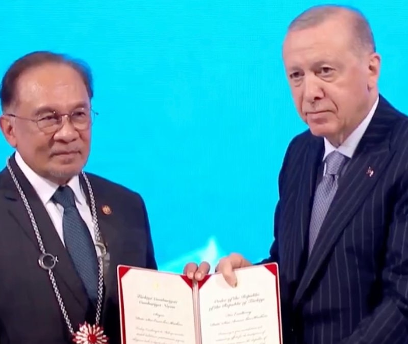 Cumhurbaşkanı Erdoğan, Malezya Başbakanı Enver İbrahim'e Cumhuriyet nişanı taktı