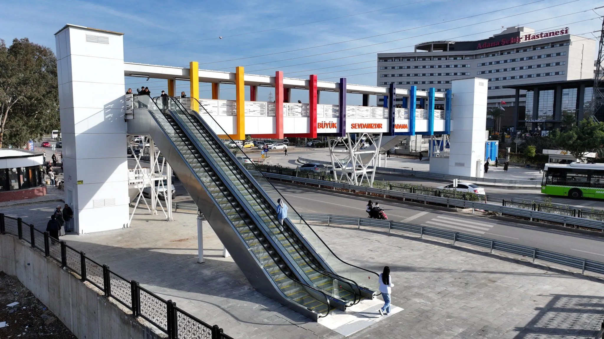 Adana Şehir Hastanesi bölgesinde modern yaya üst geçidi hizmete açıldı Adana Büyükşehir Belediyesi tarafından Adana Şehir Hastanesi bölgesinde inşa edilen; yürüyen merdiven, asansör ve kapalı yürüyüş alanına sahip modern yaya üst geçidi vatandaşların kullanımına açıldı.