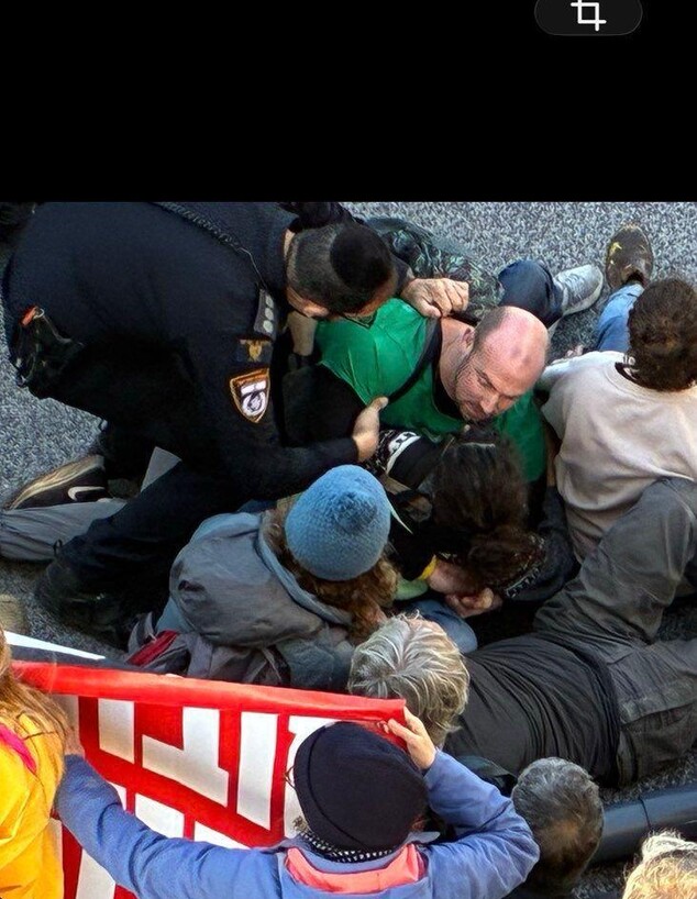 מוחים קיימו הפגנה מחוץ לבג"ץ, חסמו את הכביש וסירבו להתפנות • אחד מהם נעצר והובא לתחנה לחיפוש על גופו, שם התבקש להתפשט לגמרי • "הם יודעים שזה בניגוד לנהלים - אבל ממשיכים לנהוג בנו ככה", אמר ל-N12