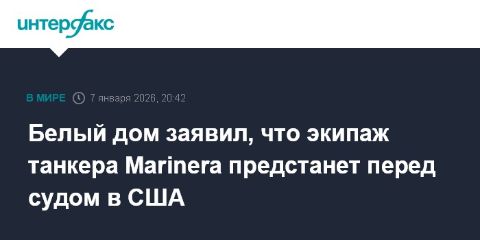 Экипаж нефтяного танкера Marinera, шедшего под российским флагом в Северной Атлантике и задержанного американскими военными, подвергнется судебному преследованию, заявила представитель Белого дома Кэролайн Левитт в среду."Был выдан судебный ордер на арест членов экипажа, это значит, что экипаж теперь является объектом судебного преследования за любое нарушение американского закона, и их привезут в США для такого разбирательства" - сказала она в ходе пресс-брифинга.