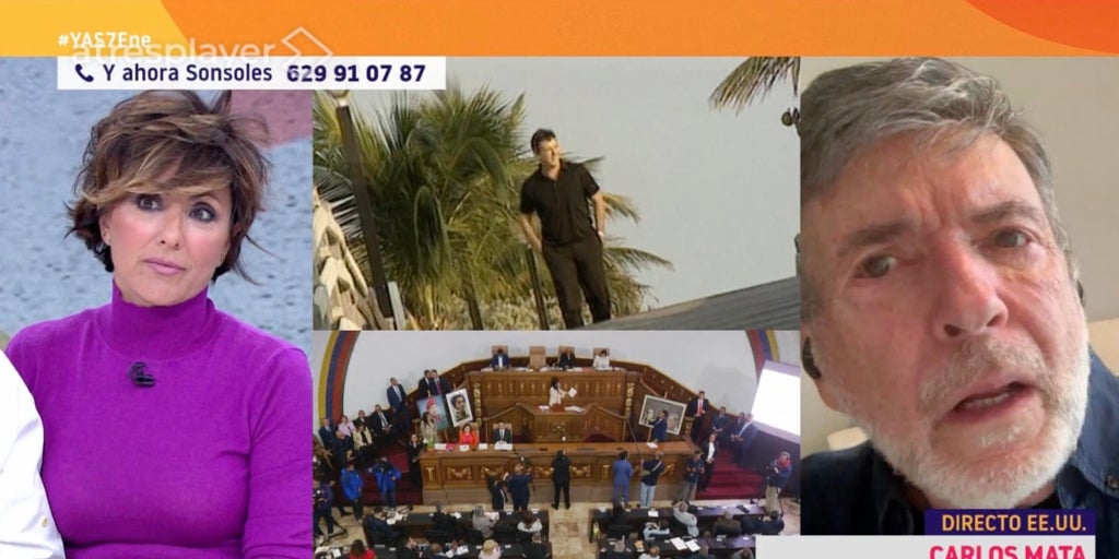 Carlos Mata fue una auténtica estrella en España en los 90, al protagonizar varias telenovelas de gran éxito entre la audiencia patria. Una de ellas ' Cristal ', que fue la que lo lanzó al estrellato. El actor, nacido en Venezuela, está viviendo con intensidad lo que está sucediendo en su país tras la detención de Nicolás Maduro por parte de Donald Trump. Para conocer cómo vive un venezolano estas circunstancias viviendo en la lejanía, Sonsoles Ónega ha podido entrevistarlo para ' Y Ahora Sonsoles ' (Antena 3) y él se ha mostrado muy agradecido con la presentadora: «Llevaba mucho tiempo con ganas de conversar contigo, Sonsoles». La presentadora le ha preguntado cómo está siguiendo lo que está sucediendo: «No soy muy de seguir las cosas de la farándula pero sí me gusta estar informado de este tipo de momentos. He vivido de mi trabajo, de las televisiones, del teatro, del cine, y bueno, es importante conocer qué ocurre de verdad». Sonsoles Ónega le ha preguntado cómo observa la situación y él se ha mostrado prudente: «No estoy haciendo entrevistas. Me han llamado de varios canales de televisión , de España, de Argentina… y es que el tema está súper agotado, lo que trataba de explicar a tus compañeros de producción es que son ya 27 años seguidos de toda esta historia rocambolesca que se ha creado a raíz del chavismo». Carlos Mata ha continuado de forma contundente: «Este tiempo hemos vivido una auténtica montaña rusa. A veces te ilusionas y se hacen elecciones , pero luego ves que están amañadas constantemente». No ha dudado en señalar que él desde Estados Unidos sigue todo de cerca y se ha manifestado agotado de las circunstancias en las que vive su pueblo. El actor venezolano ha tenido palabras de cariño para una de las colaboradoras de Sonsoles Ónega en esta tarde. Se ha referido en tono muy cariñoso a María del Monte. La cantante estaba participando en el directo y él se ha mostrado muy emotivo hacia la artista: «María, amor mío de mi corazón. Me alegro mucho de verte». «Y yo de verte tan bien», le ha contestado Carlos Mata . Ha añadido un «gracias» a la presentadora «por ponerme en contacto con alguien a quien quiero mucho y admiro mucho, que es María del Monte . Tuve la oportunidad de conocerla en su momento».