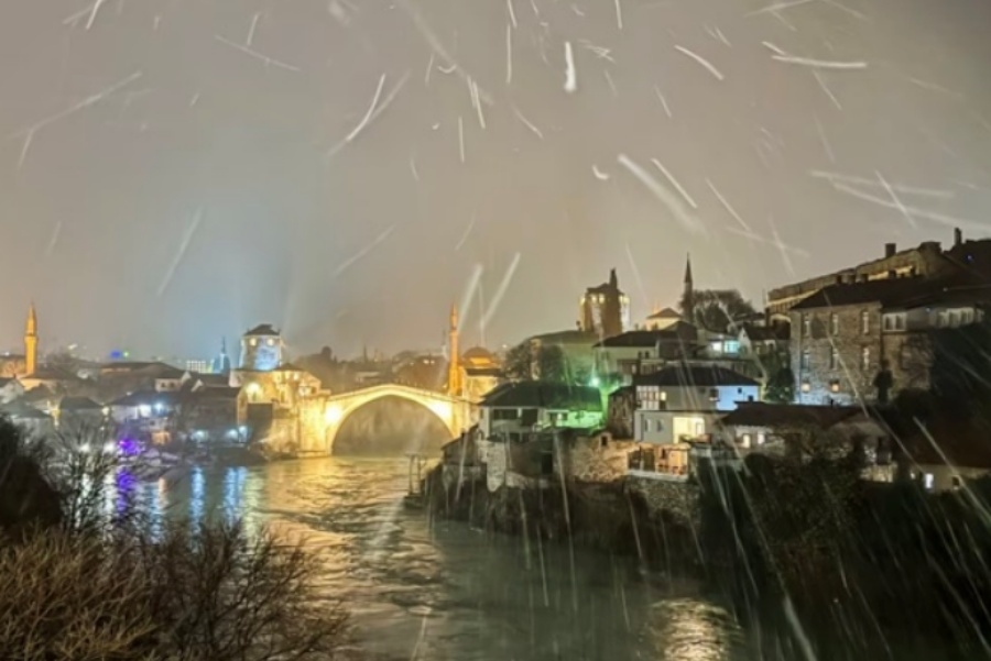 KAD SNIJEG PREKRIJE MOSTAR: Bijeli pokrivač u gradu na Neretvi, rijetka zimska pojava