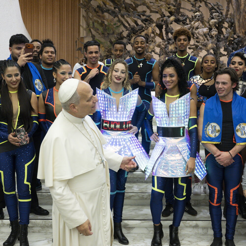 AGI - Papa Leone XIV al termine della prima Udienza Generale ha salutato con grande affetto gli artisti del Cirque Zoppis – 40 artisti, tra acrobati , trapezisti e giocolieri provenienti da Argentina, Cile, Messico, Spagna, Francia ed Etiopia – in tournée a Roma con "Evolution - Il circo del futuro", spettacolo che fonde acrobazia, tecnologia e narrazione visiva . Il Pontefice li ha ringraziati per il loro impegno nel portare gioia e speranza attraverso lo spettacolo. "Voi date felicità in tutto il mondo ", ha sottolineato Leone esortando gli artisti a continuare nel loro cammino artistico, sottolineando l'importanza della bellezza , del sorriso e della condivisione in un momento storico segnato da difficoltà e incertezze. Un messaggio che ha profondamente emozionato la compagnia, composta da performer provenienti da diversi Paesi , unita dalla passione per l' arte circense e dall'obiettivo comune di trasmettere emozioni autentiche al pubblico di tutte le età. Per il Cirque Zoppis , da sempre impegnato in una visione del circo come linguaggio universale di gioia, inclusione e meraviglia , l'incontro con Papa Leone XIV ha rappresentato un riconoscimento di altissimo valore umano e simbolico . La fusione tra arte e tecnologia "Cerchiamo di unire esibizioni mozzafiato con spettacolari giochi di luci , proiezioni interattive, droni e costumi con effetti laser", hanno spiegato alcuni di loro all'Osservatore Romano, indossando per l'occasione gli stessi costumi fluorescenti portati sul palcoscenico. "Non siamo personaggi digitali, ma persone reali che sfidano gravità, equilibrio e limiti fisici con talento e determinazione. Perché alla fine, il miglior gioco è la vita stessa, e il miglior schermo – hanno concluso – è quello che si vede con i propri occhi". Dove vedere "Evolution - Il circo del futuro" "Evolution - Il Circo del Futuro" è in scena in questi giorni a Roma Eur , area Ex Velodromo .