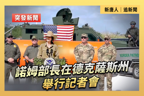 国土安全部长诺姆在德克萨斯州举行记者会。(大纪元制图)