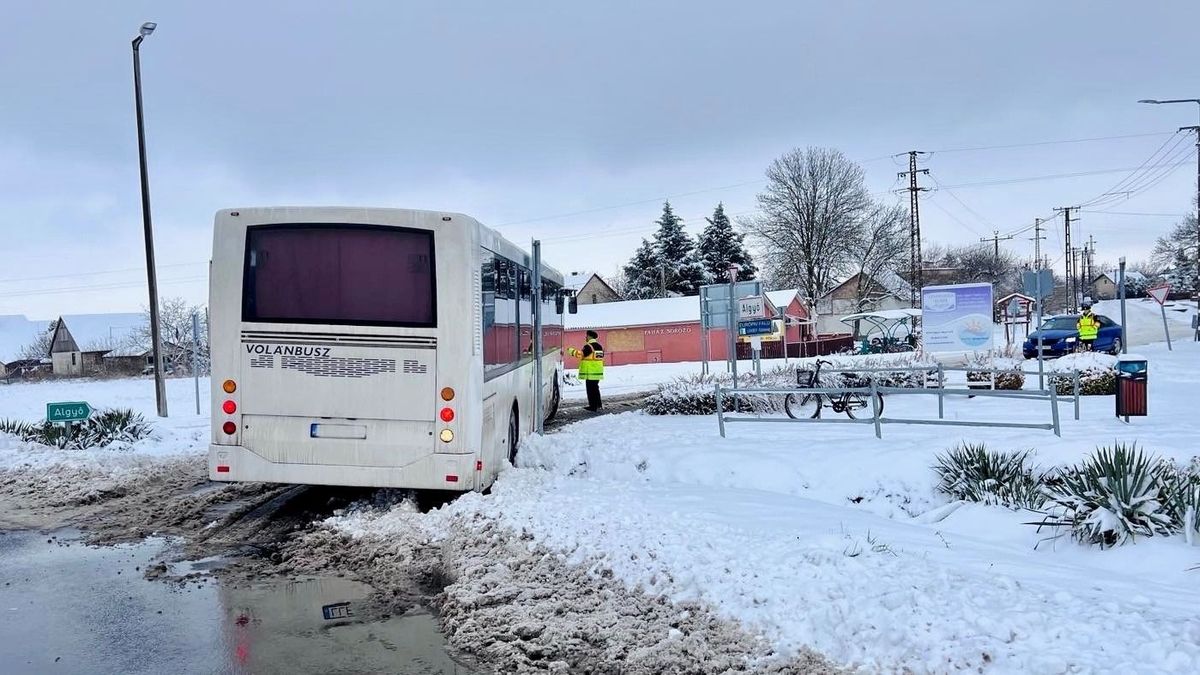 A havas, csúszós időjárás próbára tette a közlekedőket is. Algyő térségében rendőri segítségre volt szükség egy árokba sodródott autóbusz kimentéséhez.