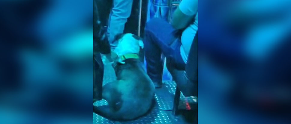 Perro pitbull se viraliza al viajar cómodamente en una unidad de la ruta 6 en Mejicanos