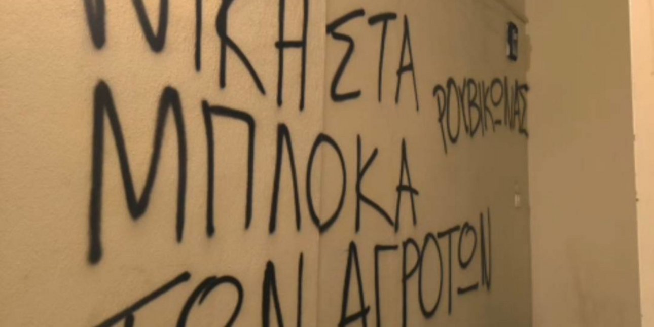 Σε βανδαλισμό των γραφείων της ΝΔ στη Λάρισα προχώρησαν μέλη του Ρουβίκωνα. Τα μέλη του Ρουβίκωνα, όπως αναφέρουν, εκφράζουν τη στήριξή τους στον αγώνα των αγροτών. «Εμείς στον Ρουβίκωνα θα συνεχίσουμε με προσήλωση να στεκόμαστε στο πλευρό των αγροτών, αντιλαμβανόμενοι το πόσο σημαντικός και καθοριστικός είναι αυτός ο αγώνας για το μέλλον της κοινωνικής και ταξικής μας οικογένειας» αναφέρουν μεταξύ άλλων στην ανακοίνωσή τους. Φωτογραφίες από την επίθεση του Ρουβίκωνα Διαβάστε περισσότερα στο iefimerida.gr