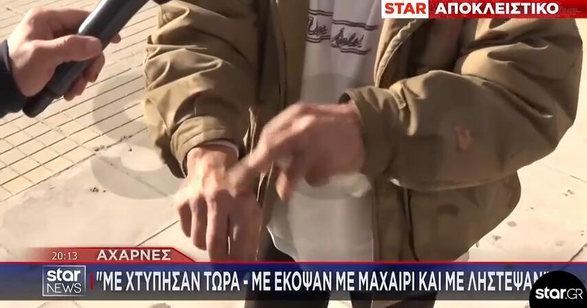 Ένας ηλικιωμένος άνδρας, εμφανώς τραυματισμένος στο πρόσωπο και στα χέρια, πλησίασε ζητώντας βοήθεια το τηλεοπτικό συνεργείο του Star