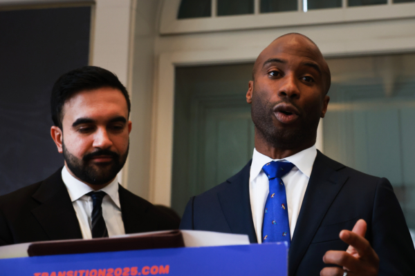 纽约市长马姆达尼任命萨缪尔斯为下一任纽约市公校教育总监。照片摄于2025年12月31日。(Spencer Platt/Getty Images)