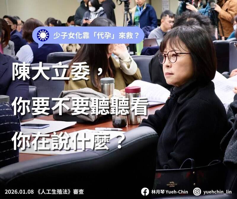 藍委稱「代孕解決少子化」 林月琴轟荒謬