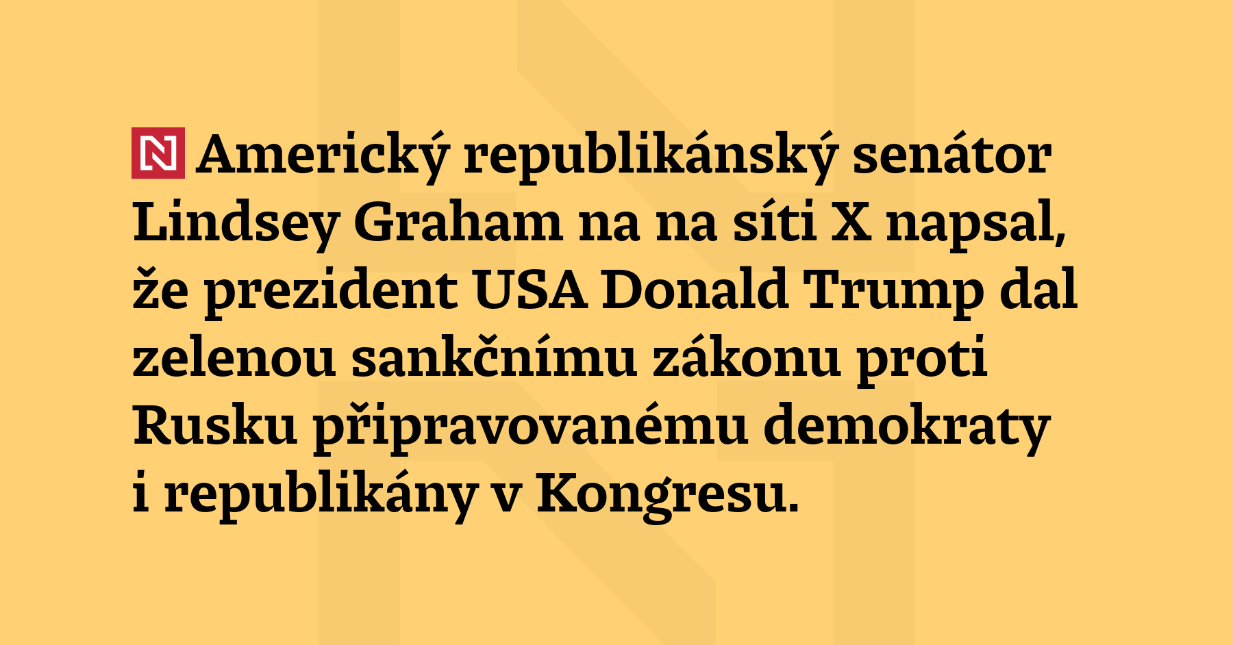 Americký republikánský senátor Lindsay Grahamna na síti X napsal, že prezident USA Donald Trump dal zelenou sankčnímu zákonu proti Rusku připravovanému demokraty i republikány v Kongresu. (Ukrajinska pravda)