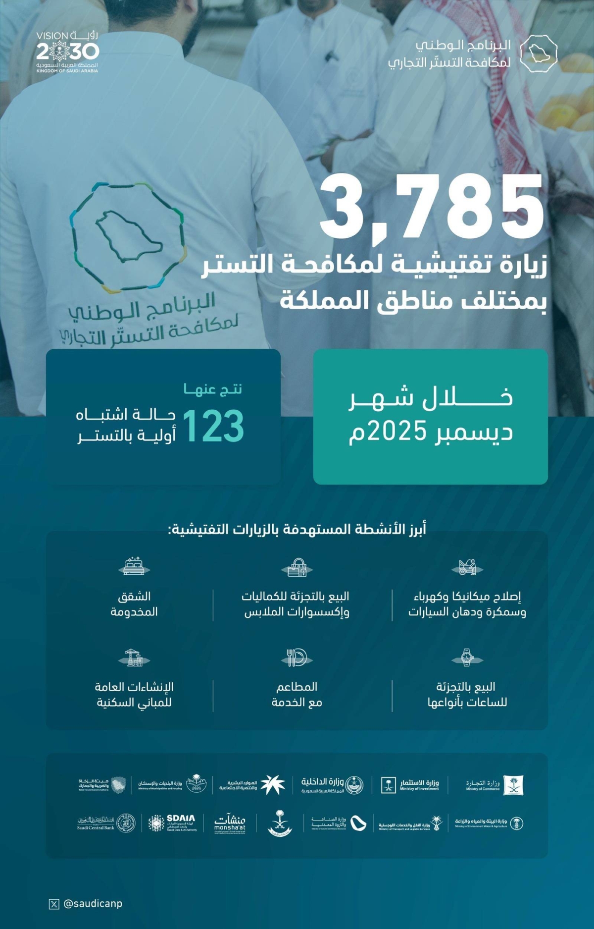 البرنامج الوطني لمكافحة التستر التجاري ينفذ 3,785 زيارة تفتيشية خلال ديسمبر