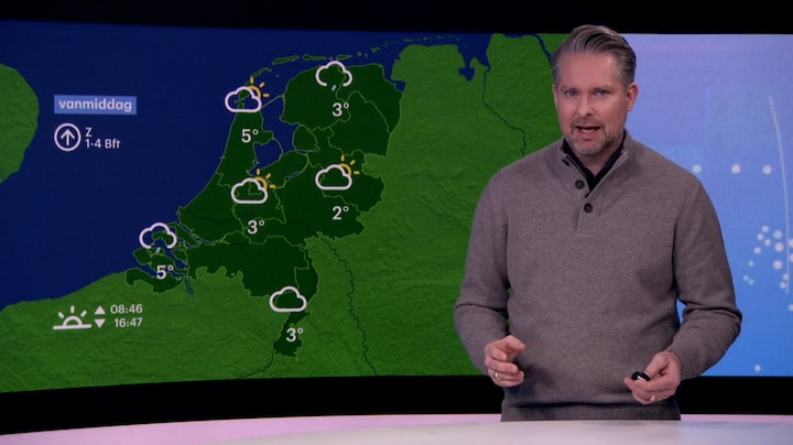 Meteoroloog Martijn Dorrestein van Buienradar verwacht vandaag een 'rustige weerdag'. Er valt af en toe een lichte regenbui, misschien met wat natte sneeuw, maar vanmiddag wordt het zo goed als droog. Daarna wordt er vooral in het noorden weer veel sneeuw verwacht.