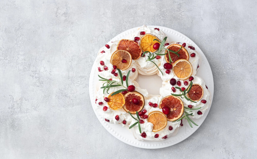 Izsmalcināts deserts, kas viegli pieskaņojams sezonai. Putukrējuma vietā var pasniegt Pavlovu ar biezu vaniļas mērci. Māca Ieva Salmane.
