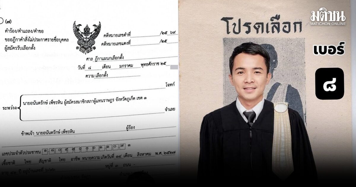 ทนายดัง ร้องศาลฎีกา ‘กกต.ภูเก็ต’ ไม่ประกาศชื่อผู้สมัคร เขต 1 เบอร์ 8 รวมไทยสร้างชาติ