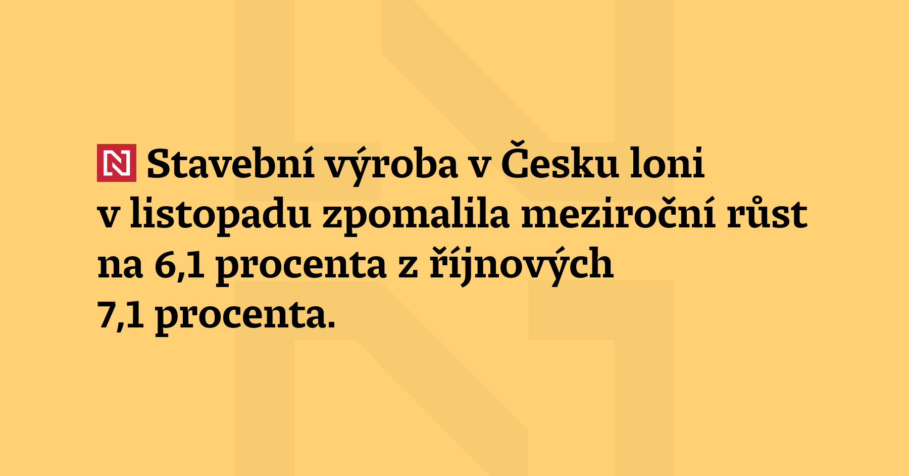 Stavební výroba v Česku loni v listopadu zpomalila meziroční růst na 6,1 procenta z říjnových 7,1 procenta. Rostlo pozemní i inženýrské stavitelství. Informoval o tom Český statistický úřad. Meziměsíčně byla stavební výroba nižší o 0,1 procenta. V meziročním srovnání české stavebnictví posiluje od listopadu 2024, v loňském roce statistici evidovali v pěti měsicích dvouciferný růst. (ČSÚ)