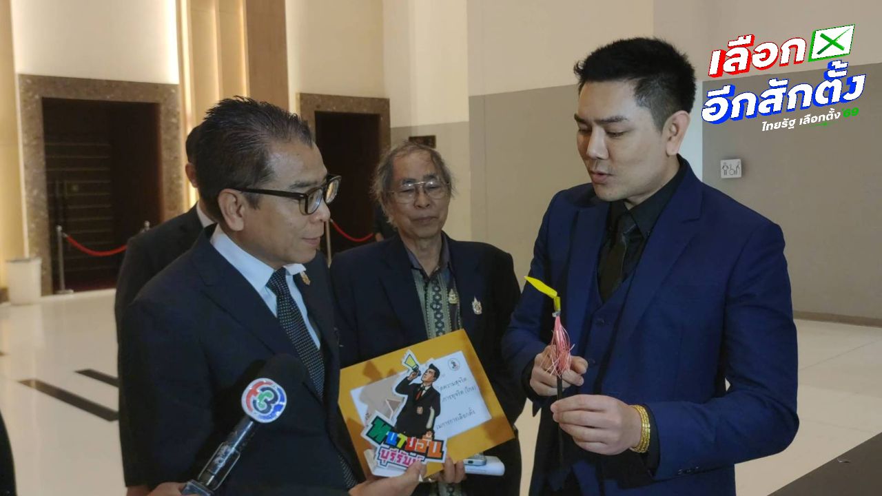 “ทนายอั๋น” บุกยื่นหนังสือพร้อมมอบ “หอกหัก” เป็นของขวัญปีใหม่ให้ เลขา กกต. เย้ยพบโกงเลือกตั้งแต่ไม่จับ จี้ตรวจสอบ “อนุทิน” ปราศรัยสัญญาว่าจะให้เงินคนละครึ่งพลัส หากกลับมาเป็นรัฐบาล