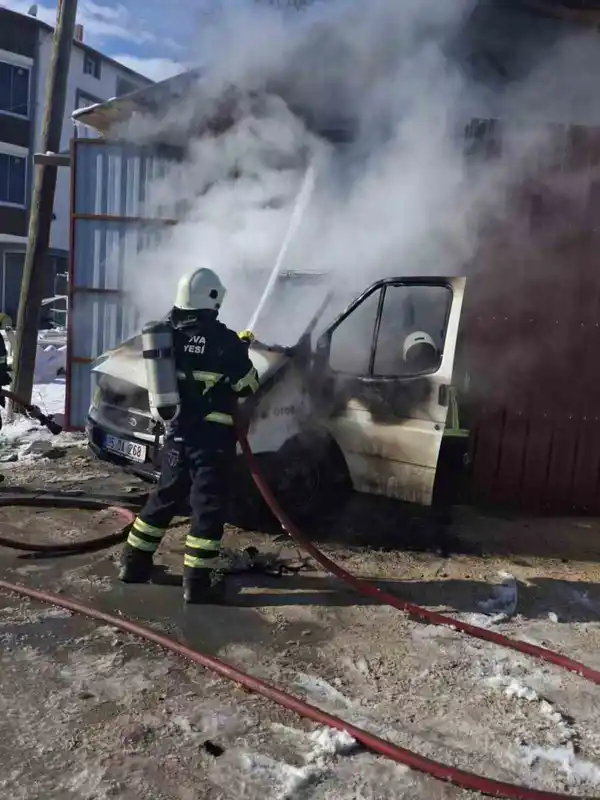 suluova’da park halindeki kamyonet yandı