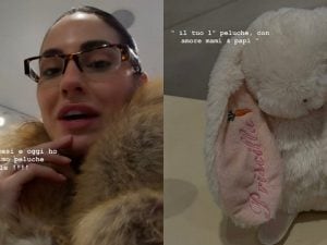 Il primo peluche di Priscilla è decorato con una dolce dedica di Giulia De Lellis e Tony Effe