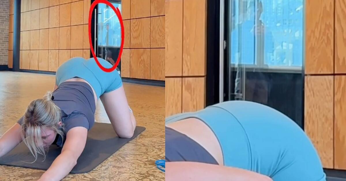 Sporto trenerės treniruotė virto virusiniu vaizdo įrašu dėl itin nemalonios priežasties – moteris netyčia užfiksavo, kaip kitas sporto klubo lankytojas ją slapta filmuoja.
