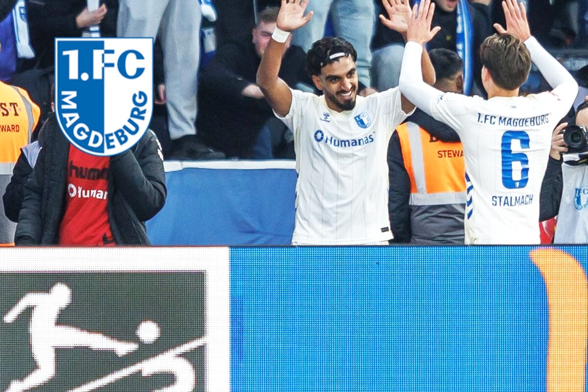 Nach seinem Sturz im Berliner Olympiastadion kann Rayan Ghrieb, Stürmer des 1. FC Magdeburg, über seinen besonderen Jubel wieder lachen.
