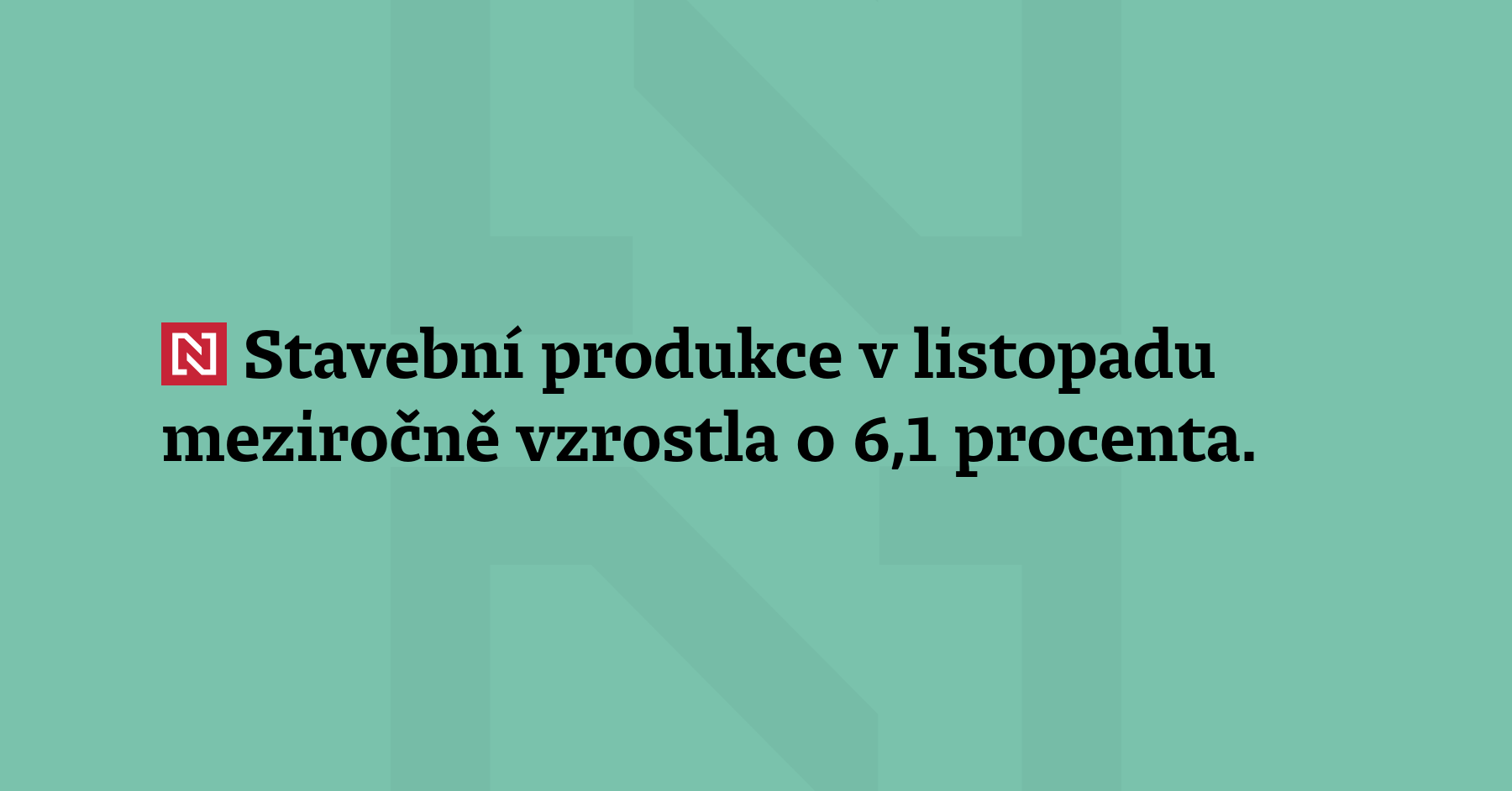 Stavební produkce v listopadu meziročně vzrostla o 6,1 procenta. Meziročně bylo zahájeno o 20,8 procenta...