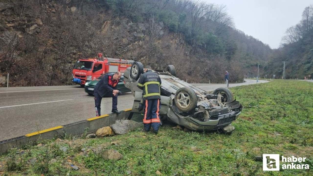 Zonguldak-Ankara yolunda meydana gelen trafik kazasında sürücüsünün kontrolünden çıkan araç takla attı. Kazada sürücü ile yanında bulunan 2 yolcu yaralandı.
