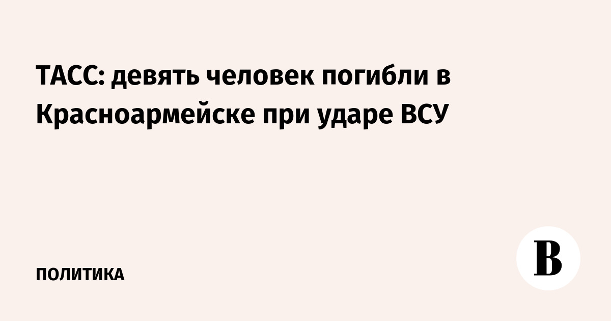 ТАСС: девять человек погибли в Красноармейске при ударе ВСУ