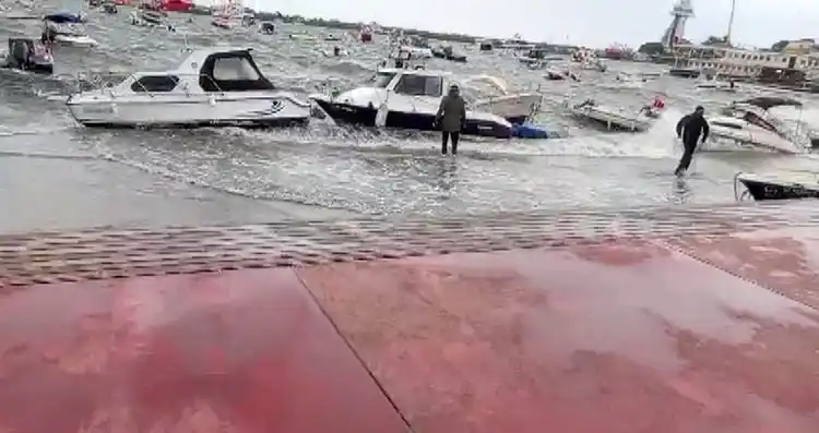 tuzla’da fırtına alarmı: deniz sahil yoluna taştı, tekneler zor anlar yaşadı