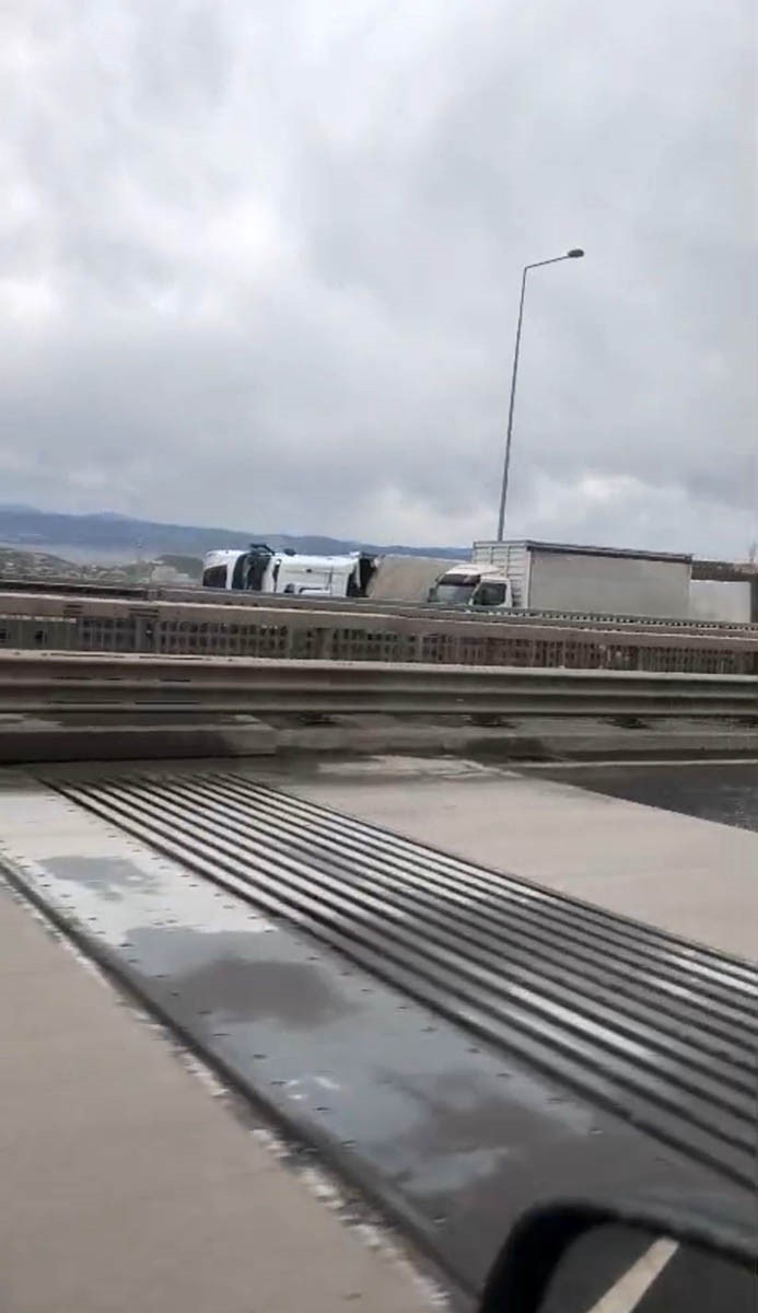 Kuzey Marmara Otoyolu’nun Kocaeli kesiminde etkili olan şiddetli fırtına nedeniyle seyir halindeki 2 tır devrildi. Kocaeli’de gece saatlerinden itibaren etkili olan şiddetli fırtına, Kuzey Marmara Otoyolu’nda ulaşımda aksamalara yol açtı. Otoyolun Dilovası ilçesi geçişinde seyir halinde olan 2 tır, şiddetli rüzgarın etkisiyle kontrolden çıkarak devrildi. İhbar üzerine bölgeye jandarma ve otoyol ekipleri sevk edildi. Kazalarda...