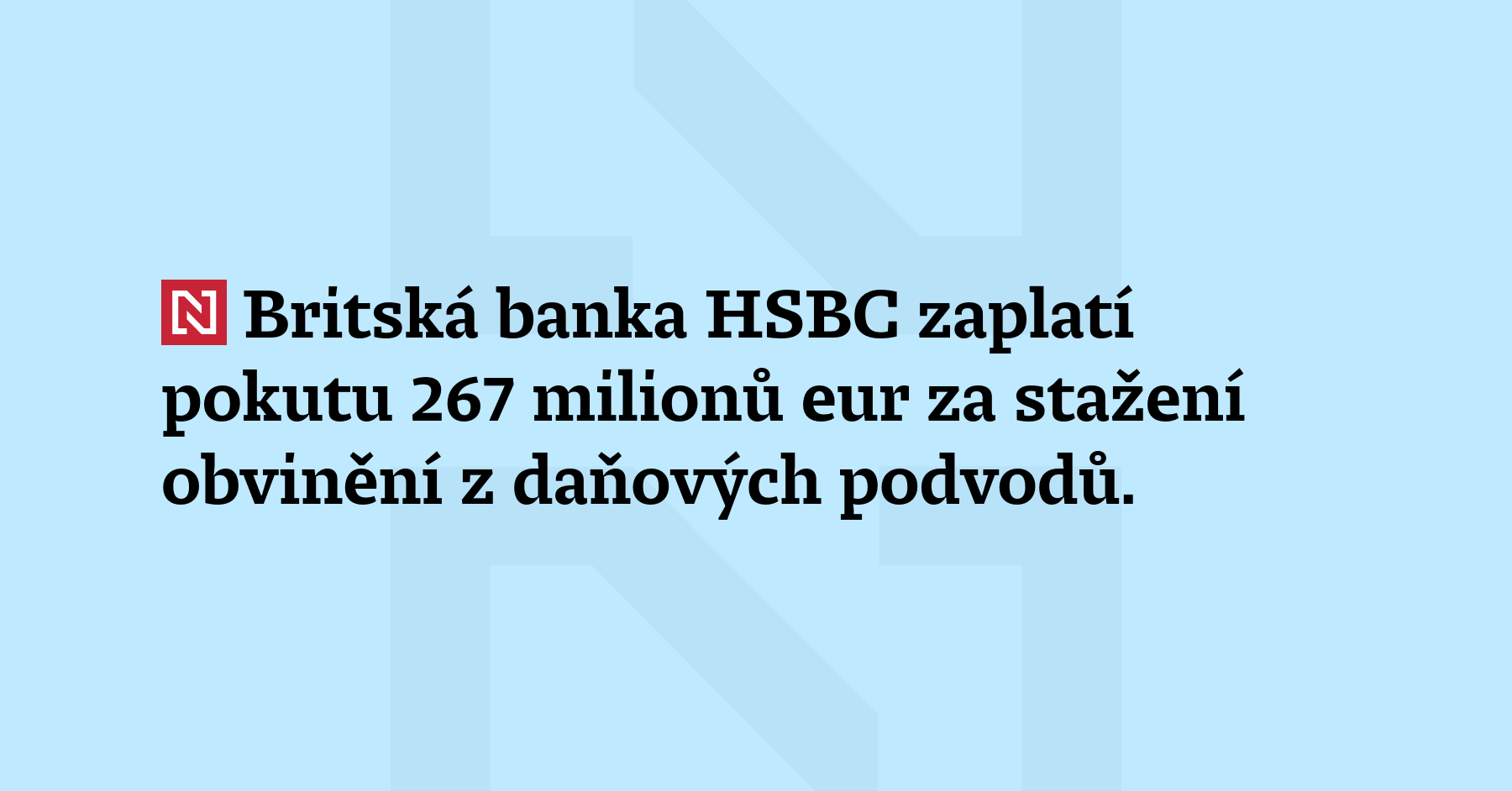 Britská banka HSBC zaplatí pokutu 267 milionů eur za stažení obvinění z daňových podvodů. HSBC je druhou bankou, která se tak dohodla s francouzskými úřady. (AN)