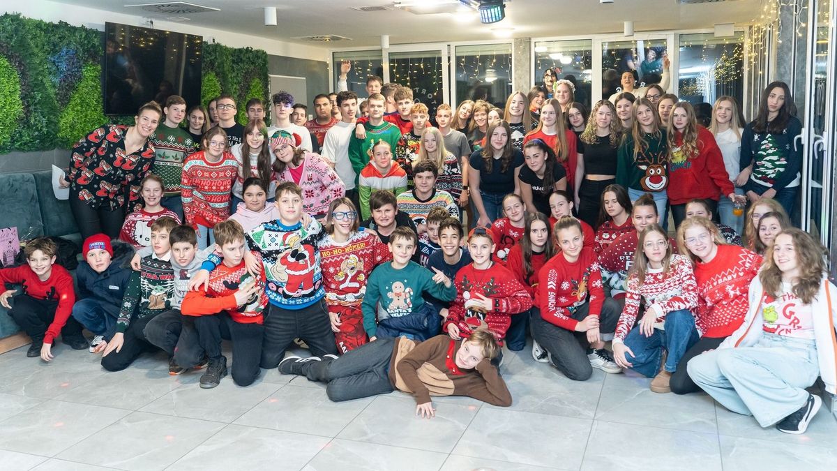 A DFVE felnőtt és utánpótlás vízilabdázói vidám bulival zárták le az évet, ronda karácsonyi pulcsikban.