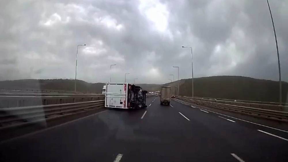 Fırtınada seyir halindeki kamyonet devrildi