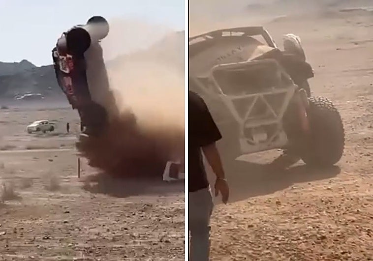 Gran susto de Jesús Calleja en un accidente en el Dakar: varias vueltas de campana y el coche destrozado