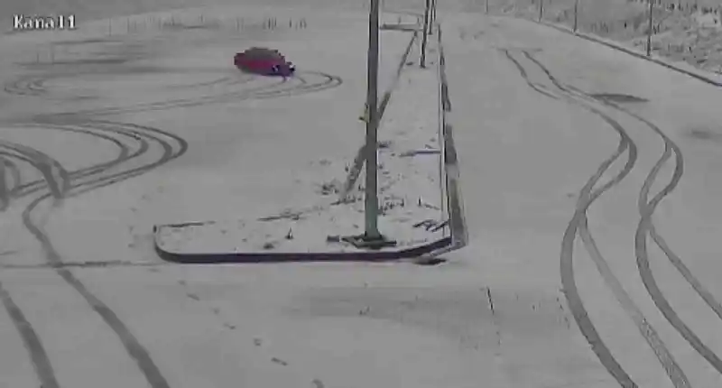 karla kaplı sınav parkurunda drift yaptılar, kameraya yakalandılar