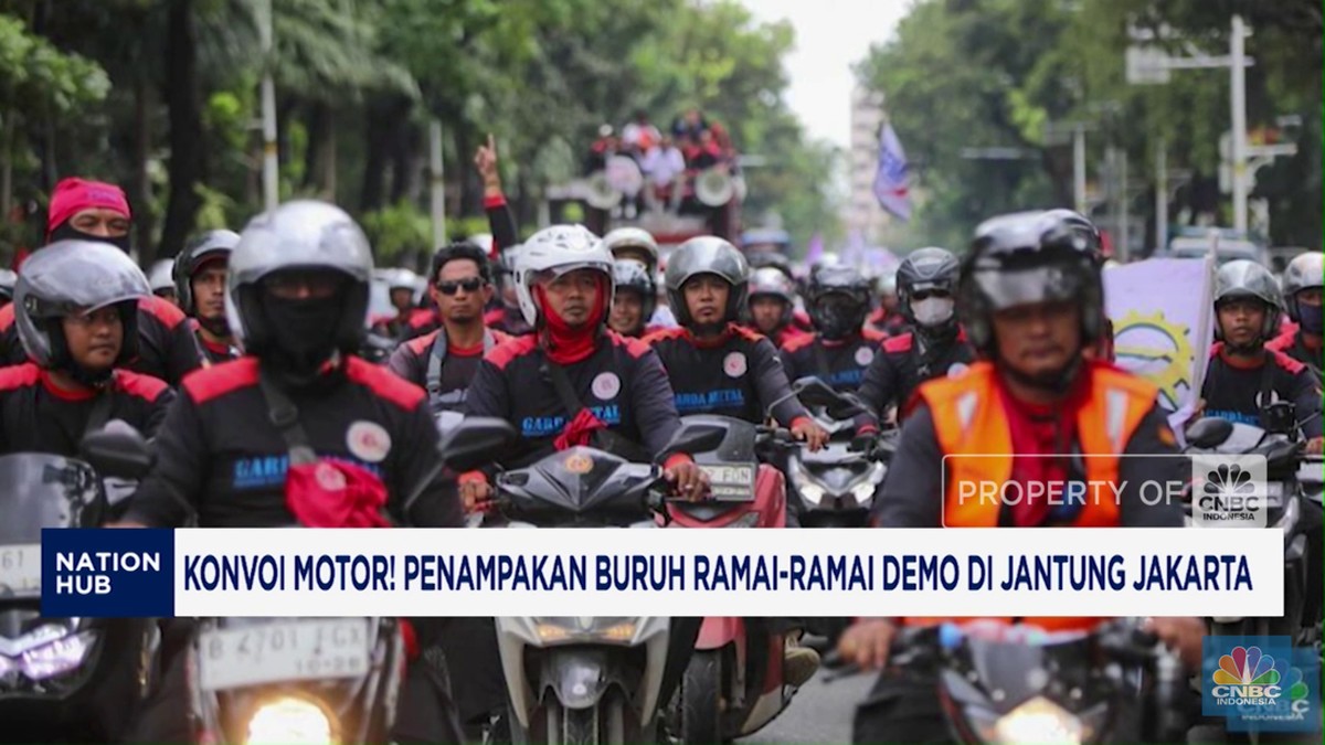 Video: Konvoi Motor! Buruh Ramai-Ramai Demo di Jantung Jakarta