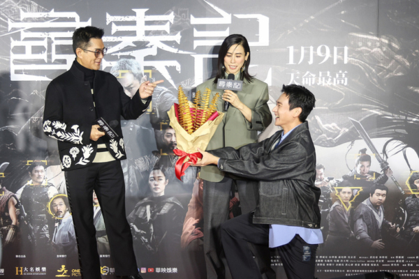 电影《寻秦记》首映会8日晚间在台北举行。(中央社)