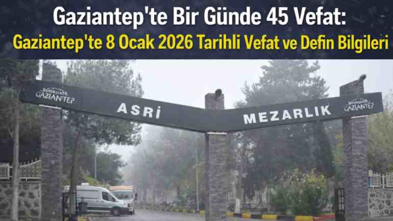 Gaziantep’te 8 Ocak 2026 tarihinde vefat eden 45 vatandaş, Asri ve Yeşilkent Mezarlıkları başta olmak üzere kent genelinde ve çevre illerde defnedildi. İşte isim isim tam defin listesi…