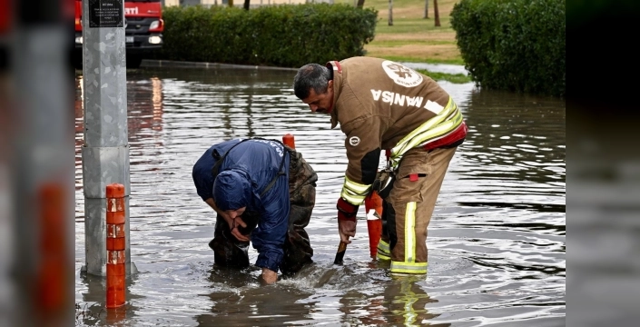 Manisa'da gece başlayan fırtına ve sağanak yağışa karşı belediye ve MASKİ ekipleri, 400 personel ve 64 araçla müdahale ederek su birikintilerini önledi ve trafik akışını korudu.