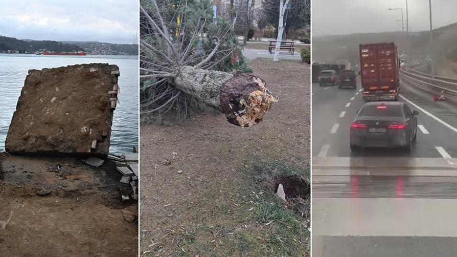 İstanbul'da sabah saatlerinde etkisini artıran şiddetli rüzgar ve fırtına, kent genelinde hayatı olumsuz etkiledi. Ağaçları deviren ve çatıları uçuran fırtına nedeniyle ulaşım seferi de iptal oldu. İstanbul Valiliği gün içinde 350 ihbar aldıklarını duyurdu.