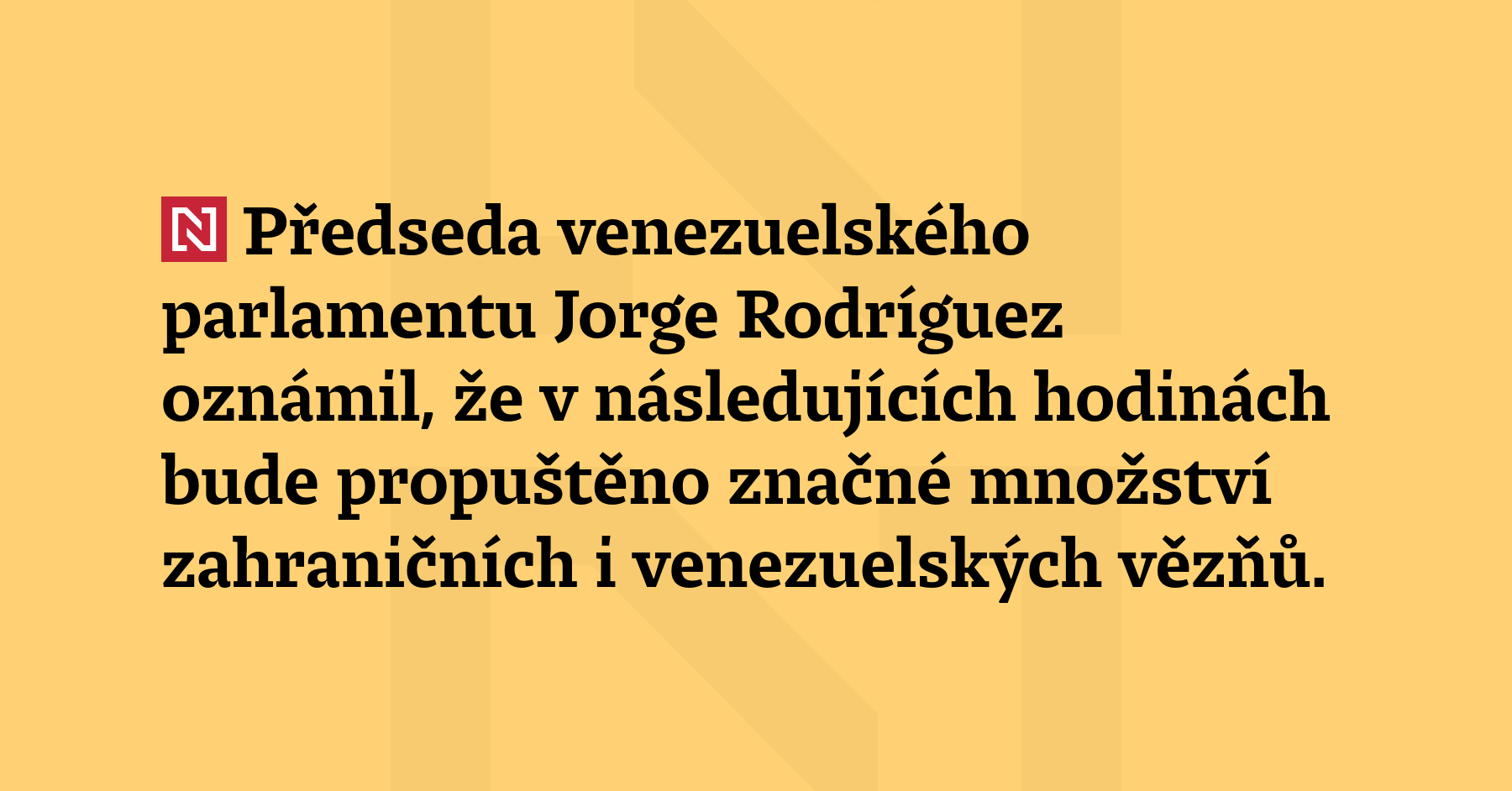 Předseda venezuelského parlamentu Jorge Rodríguez oznámil, že v následujících hodinách bude propuštěno značné množství zahraničních i venezuelských vězňů. Propuštění, které opakovaně požadovala opozice, je gestem míru, prohlásil Rodríguez. (Reuters)
