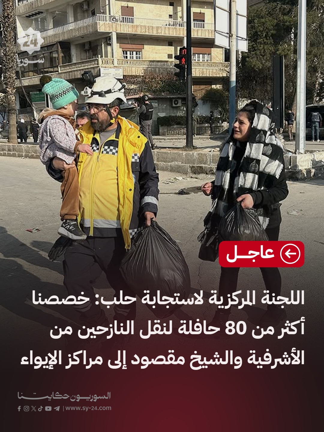 اللجنة المركزية لاستجابة حلب: خصصنا أكثر من 80 حافلة لنقل النازحين من الأشرفية والشيخ مقصود إلى مراكز الإيواء خصصنا عيادات متنقلة قرب مراكز الإيواء لتلبية احتياجات النازحين لدينا 10 مراكز إيواء مؤقتة في حلب ومراكز في عفرين وأعزاز مديرية الصحة أجرت التدخلات الطبية اللازمة ونقلت الحالات الحرجة إلى المشافي The post خصصنا أكثر من 80 حافلة لنقل النازحين من الأشرفية والشيخ مقصود إلى مراكز الإيواء appeared first on SY24 .