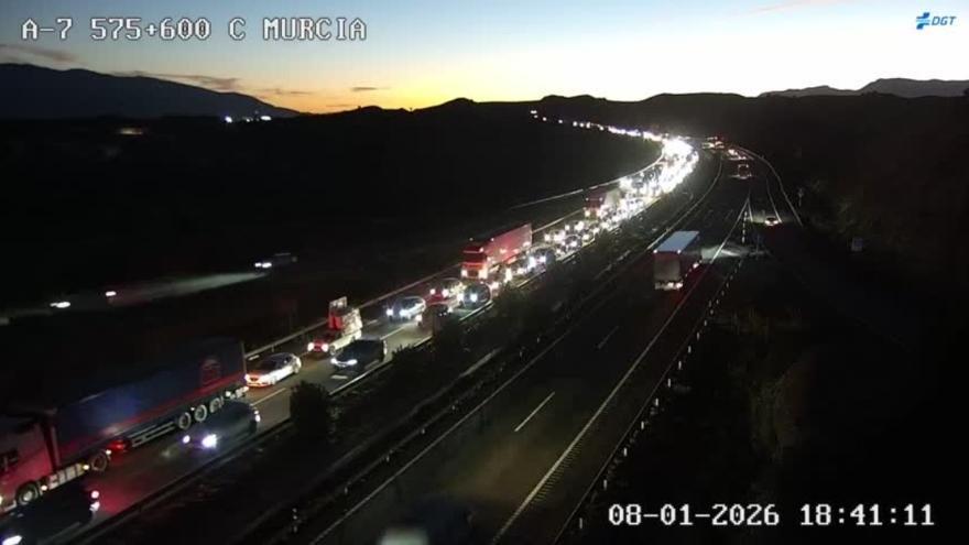 Un choque múltiple con cinco vehículos implicados en la A-7 a su paso por Murcia provoca importantes retenciones en la zona, según informa el Centro de Coordinación de Emergencias 112 de la Región.