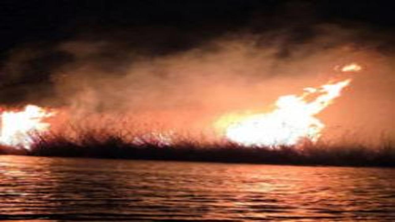 Hatay'ın Samandağ ilçesindeki Milleyha Kuş Cenneti'nde çıkan sazlık yangını, rüzgarın etkisiyle kısa sürede büyüdü. İtfaiye ekiplerinin yoğun çabasıyla alevler kontrol altına alındı.