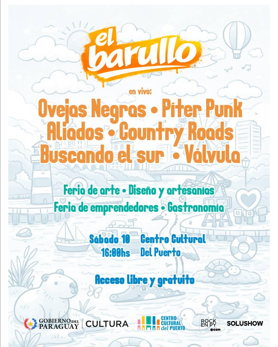 El festival de rock «El Barullo» se tendrá este sábado 10 de enero desde las 16:00 horas en la primera edición de Embarcate 2026. en el Puerto de Asunción. La actividad, organizada por productores independientes con el apoyo de la Secretaría Nacional de Cultura (SNC), ofrecerá una jornada para disfrutar del verano junto al río, […]