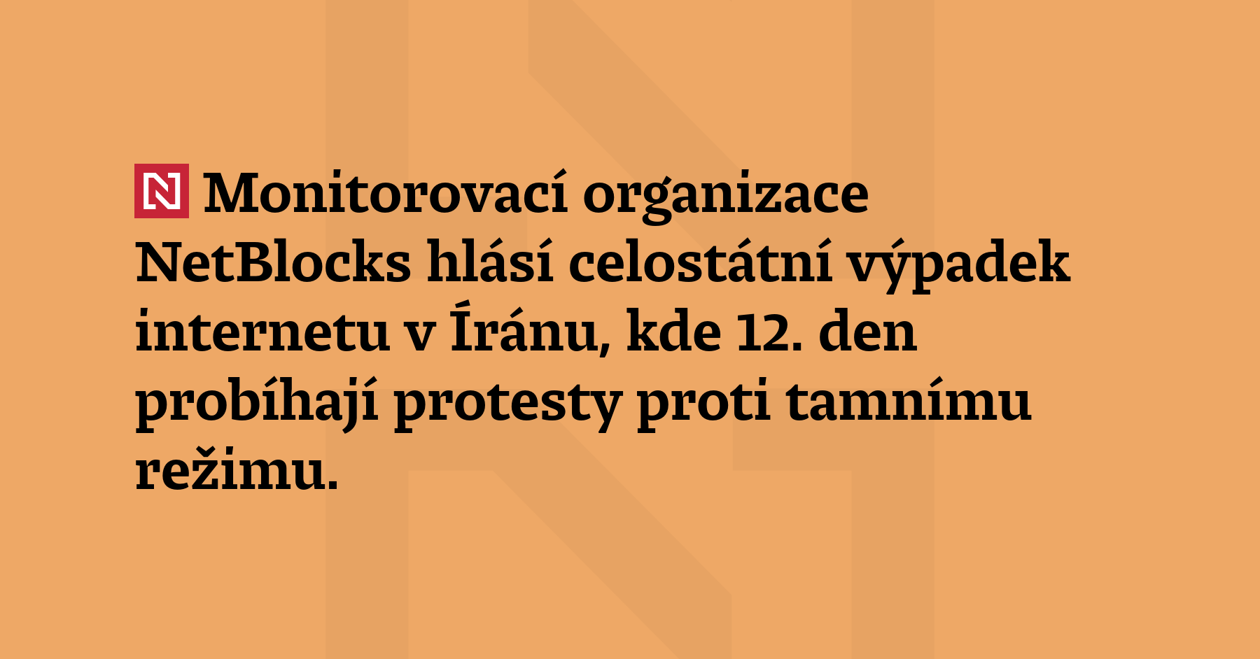Monitorovací organizace NetBlocks hlásí celostátní výpadek internetu v Íránu, kde 12. den probíhají protesty proti tamnímu režimu. (Reuters)