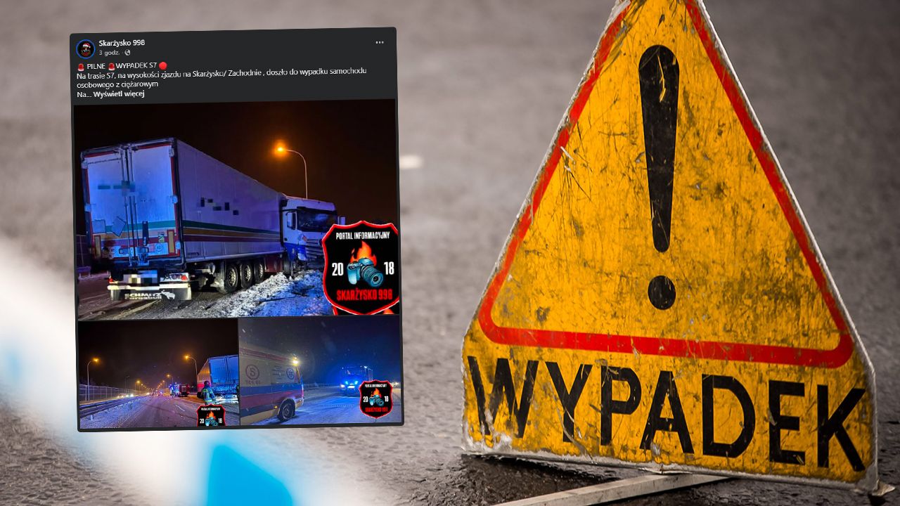 Zderzenie TIR-a i osobówki koło Skarżyska. S7 zablokowana
