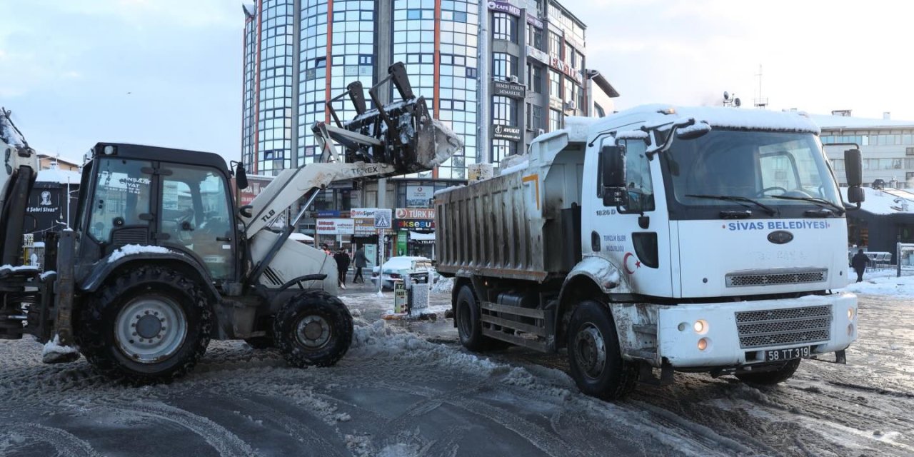 Sivas’ta gece saatlerinden itibaren etkisini artıran yoğun kar yağışıyla birlikte belediye ekipleri sahada çalışmalarını sürdürdü.
