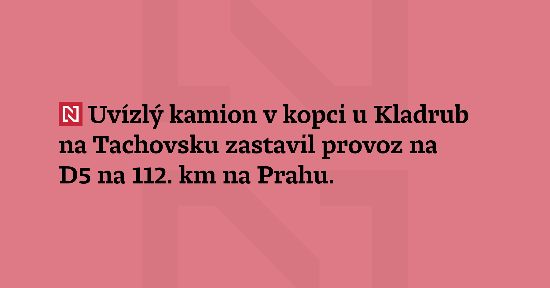 Uvízlý kamion v kopci u Kladrub na Tachovsku zastavil provoz na D5 na 112. km na Prahu. Dálnice už stojí hned za hranicí mezi 144. a 136. km na Prahu. (ČTK)