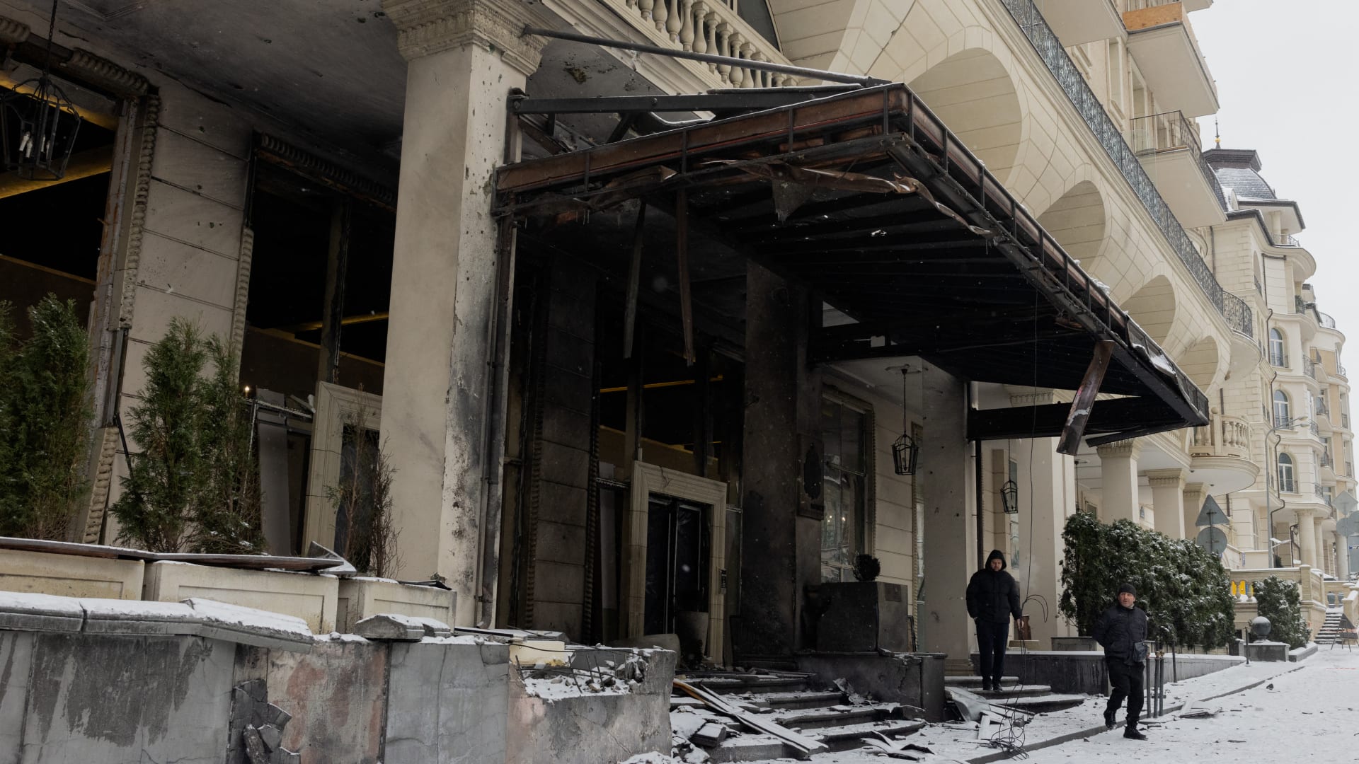 تضرر مبنى السفارة القطرية في العاصمة الأوكرانية، كييف، خلال ضربات جوية شنتها روسيا، الجمعة، واتهام موسكو باستهداف المقر الدبلوماسي.